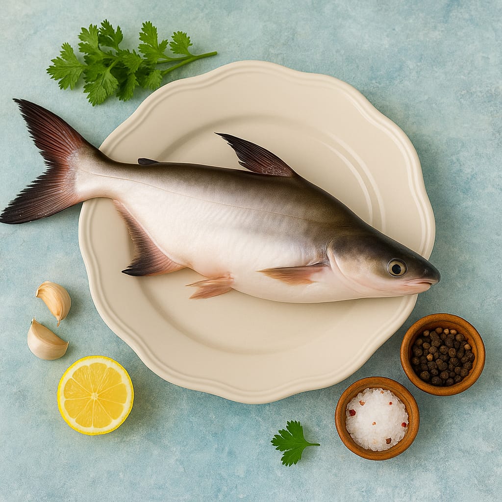 “Pangasius hai sabse no-fuss fish – bilkul seedha, boneless aur butter-soft. Iska taste mild, texture silky aur masale se friendship deep! Fry, grill, ya curry – har role mein fit. Ye gym wale bhaiyon ka bhi favourite hai – protein full, fat low aur taste 100%!”